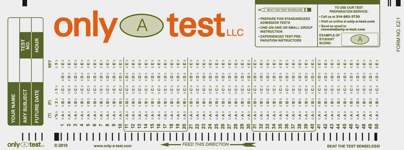 Based in the St. Louis area, Only a Test LLC provides expert one-on-one and small-group preparation for college, graduate, and independent-school admissions exams, including the ACT, SAT, GMAT, GRE, LSAT, ISEE, and SSAT.